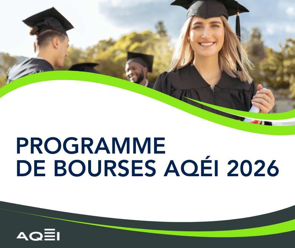 L’AQÉI est très heureuse d’annoncer le retour de son populaire programme de bourses aux étudiants gradués qui a connu un grand succès dans le passé. Une bourse de 1500 $ sera offerte en 2026.
